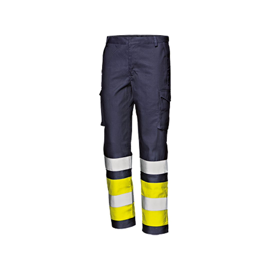 Would you like to receive more information?Work trousers made from multi-purpose fabric with fire-retardant treatment, designed to guarantee maximum safety for those working in high-risk environments where exposure to multiple hazards is constant. They offer integrated protection against flames, convective and radiant heat, and contact, as well as molten metal splashes. Antistatic properties and effectiveness in containing the energy released by electric arcs up to 4 kA complete the safety profile of these trousers. The high percentage of cotton, combined with technical fibres, helps to perfectly balance protection and comfort, making the garment soft and breathable without compromising strength and mechanical resistance. The reflective strips sewn onto the legs significantly increase the operator's visibility, improving safety during work activities. The 5 pockets make it extremely functional and practical, allowing you to always have essential tools and items close at hand while working.
