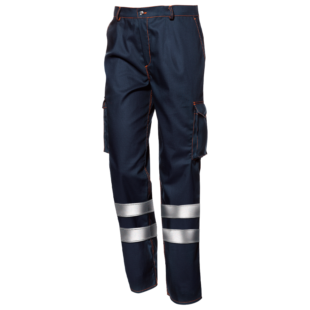 guarantees protection againstlimited splashes of liquid chemicals. Antistatic properties and effectiveness in containing the energy released by electric arcs upto 4 kA complete the safety profile of the trousers. The high percentage of cotton, combined with technical fibres, helps to perfectly balance protection and comfort, making the garment soft and breathable without compromising strength and mechanical resistance. The reflective bands sewn onto the garment ensure the operator's visibility in low light conditions or in the presence of direct light sources, such as vehicle headlights. The 5 pockets make it extremely functional and practical, allowing you to always have the tools and items you need for work at your fingertips.